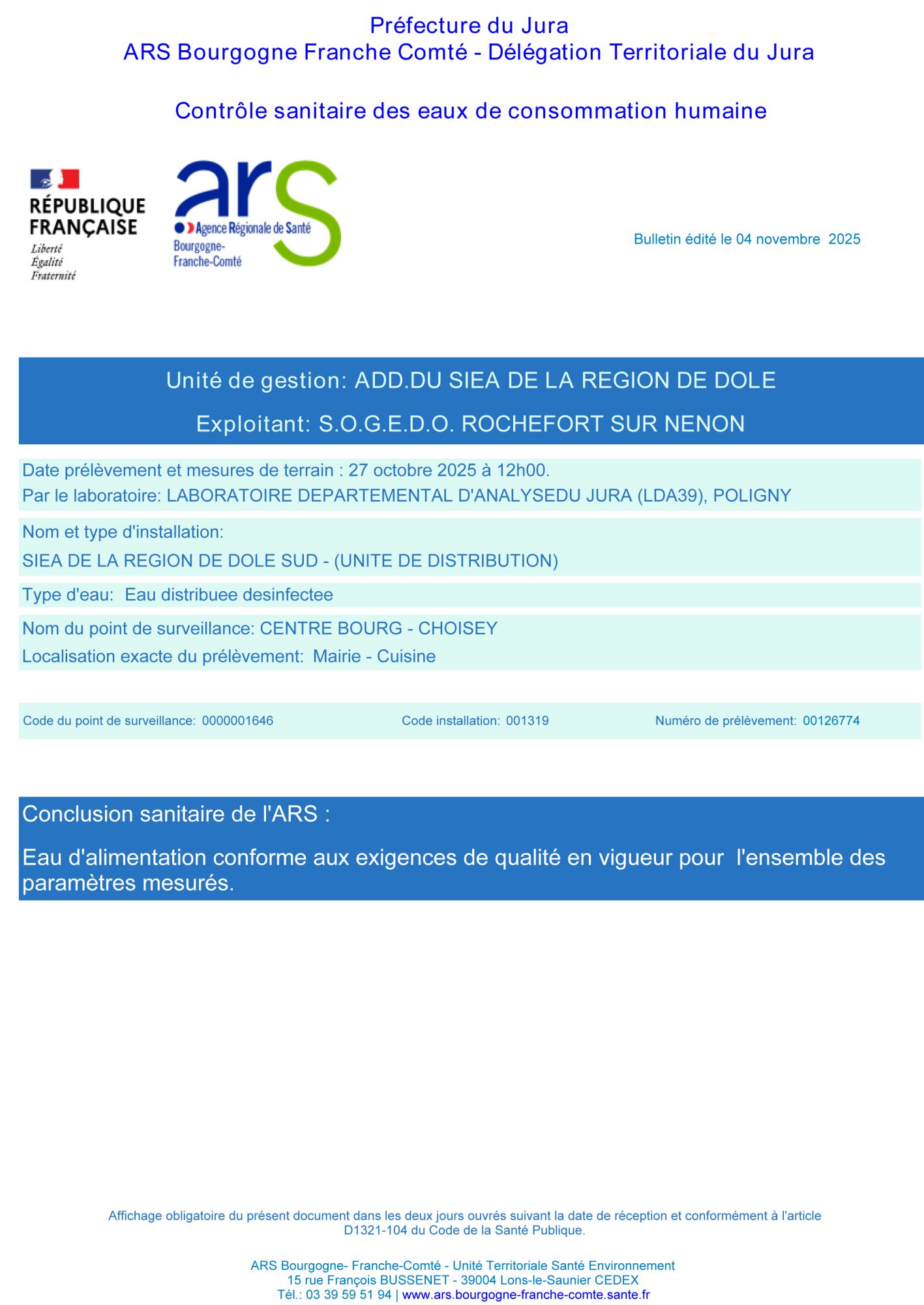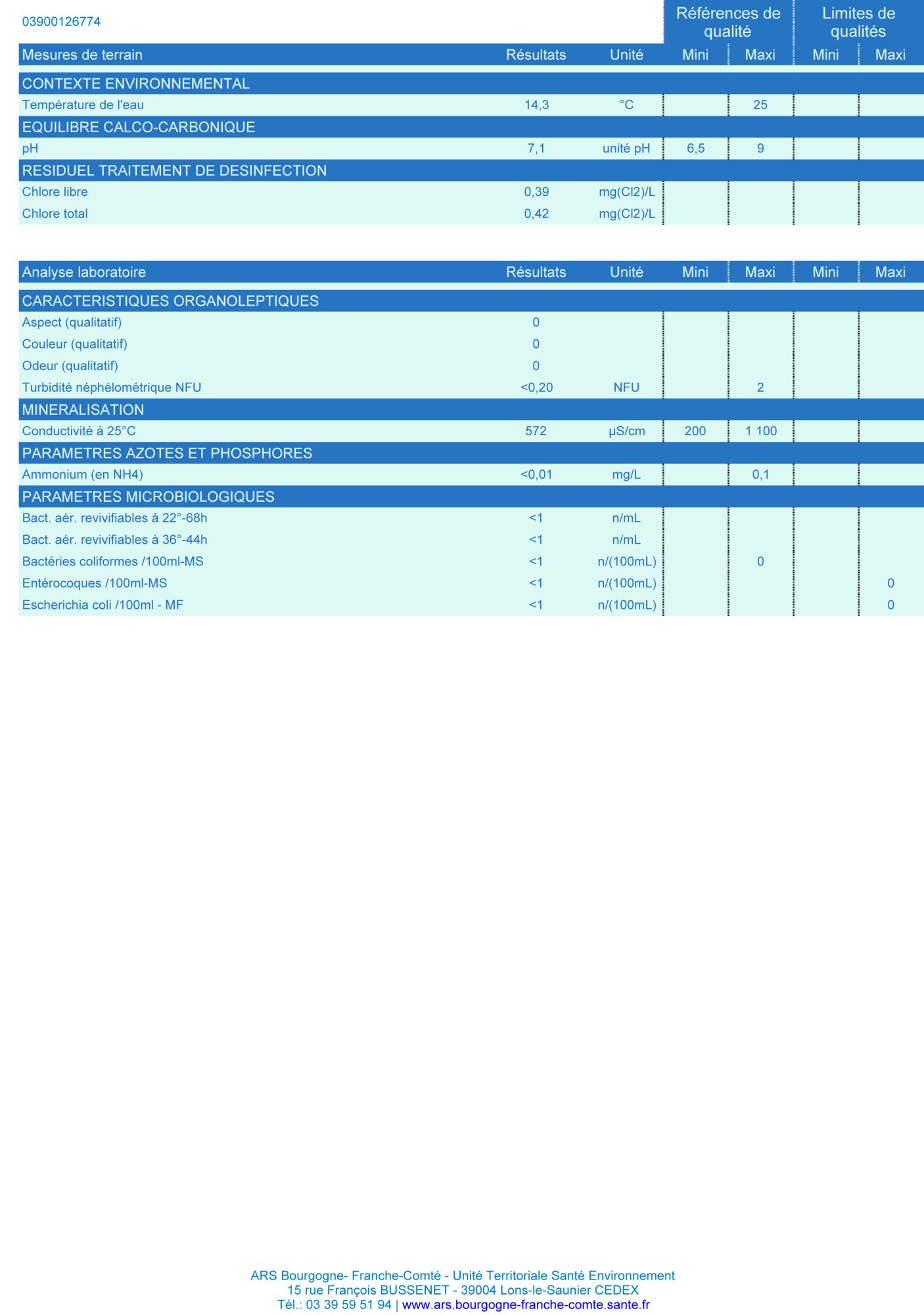 Rapport contrôle sanitaire des eaux destinés à la consommation humaine